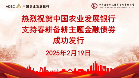 2月19日,中國農業發展銀行(以下簡稱農發行)在中央結算公司以公開招標方式,面向境內外投資者成功發行2025年首單1年期支持春耕備耕主題金融債券128億元,發行利率1.4343%,認購倍率3.12倍,受到了郵儲銀行、渤海銀行、青島農商銀行、光大銀行、興業銀行等機構的大力支持。募集資金將用于農發行發放春耕備耕貸款,支持種子、化肥等農資供應,農機裝備、智慧農業等現代農業科技項目以及高標準農田、黑土地保護等耕地提質增效項目。