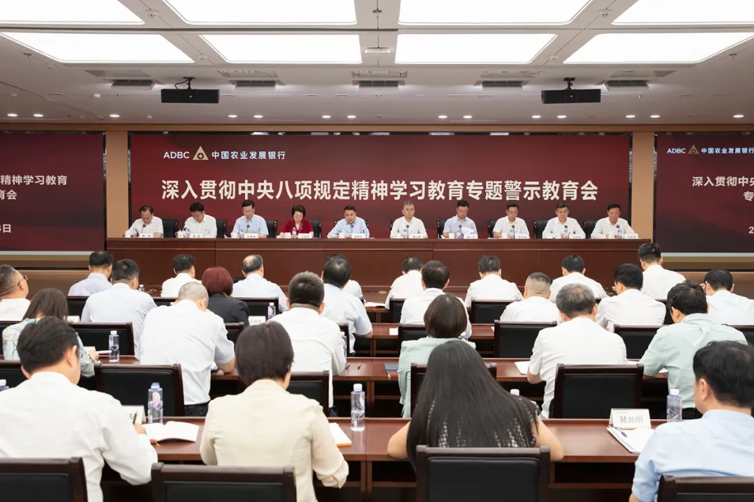 7月8日,中國農業發展銀行召開深入貫徹中央八項規定精神學習教育專題警示教育會。黨委書記、董事長湛東升主持會議并對以案說德、以案說紀、以案說法、以案說責提出要求,黨委副書記張小東傳達學習習近平總書記關于加強黨的作風建設的重要論述,黨委副書記丁曉芳傳達學習習近平總書記在中共中央政治局第二十一次集體學習時的重要講話精神,駐行紀檢監察組組長、農發行黨委委員熊驚峰通報剖析系統內近年來查處的風腐一體案件及違反中央八項規定精神典型案例。總行班子成員、高管出席會議。