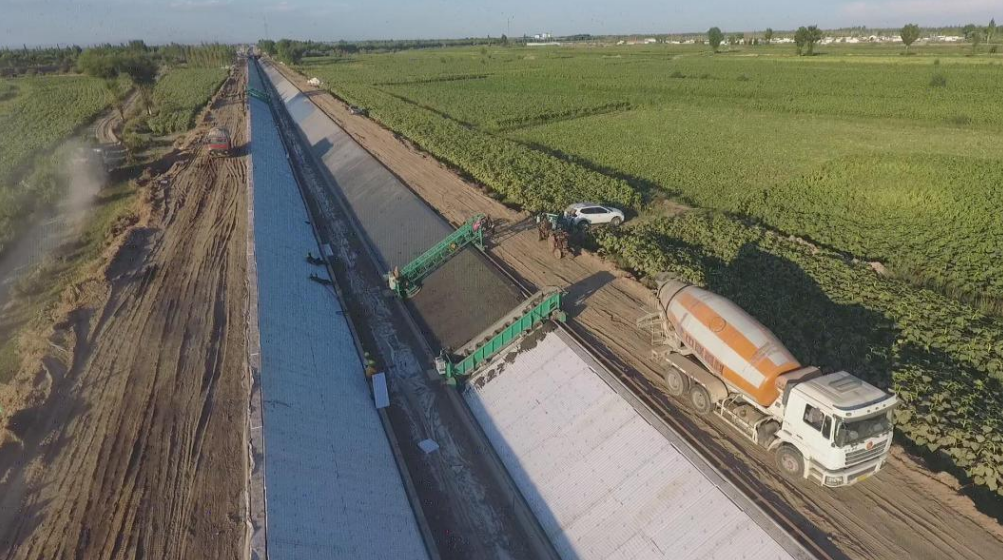 ▲防滲襯砌渠道工程現(xiàn)場(chǎng)