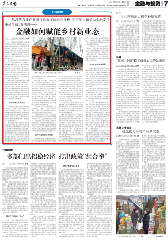 在全面推進鄉村振興的征程中,金融力量正成為激活鄉村資源、培育新業態、推動產業融合發展的關鍵引擎。從農村宅基地改革盤活土地資源,到現代農業產業園打造農文旅融合樣板,再到千年古鎮借助金融支持重煥生機,一系列生動實踐展現了金融助力鄉村新業態發展的強大效能,為建設宜居宜業和美鄉村注入澎湃動力。記者日前走進四川多地,探尋金融助力鄉村新業態發展的秘密。