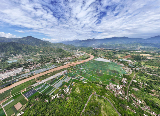 2025年7月9日拍攝的四川省攀枝花市米易縣撒蓮鎮安全村高標準農田(無人機照片)。新華社記者 江宏景 攝