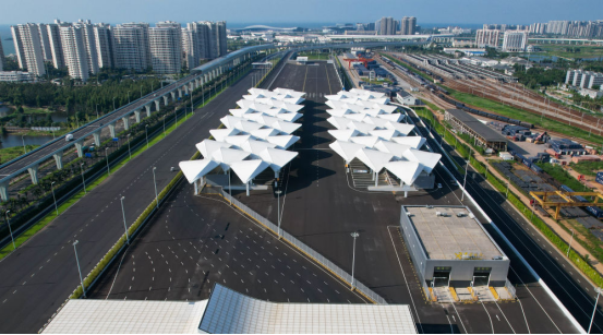 這是2025年9月23日拍攝的海口新海港和南港“二線口岸”(貨運)集中查驗場海關查驗區(無人機照片)。新華社記者 楊冠宇 攝